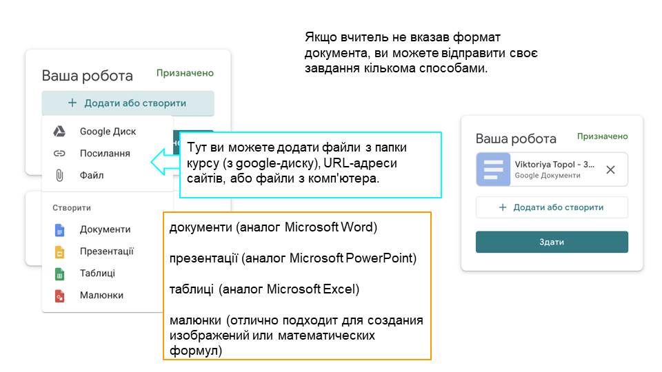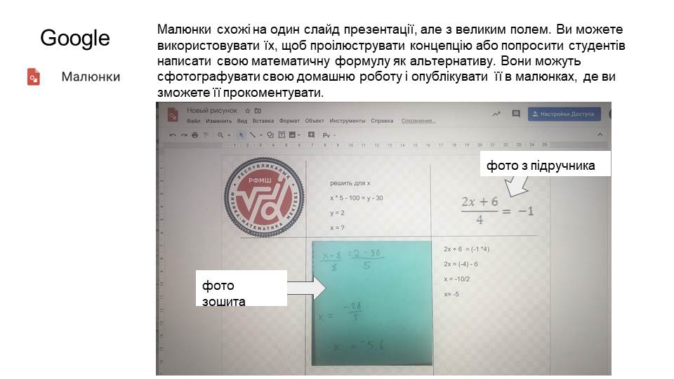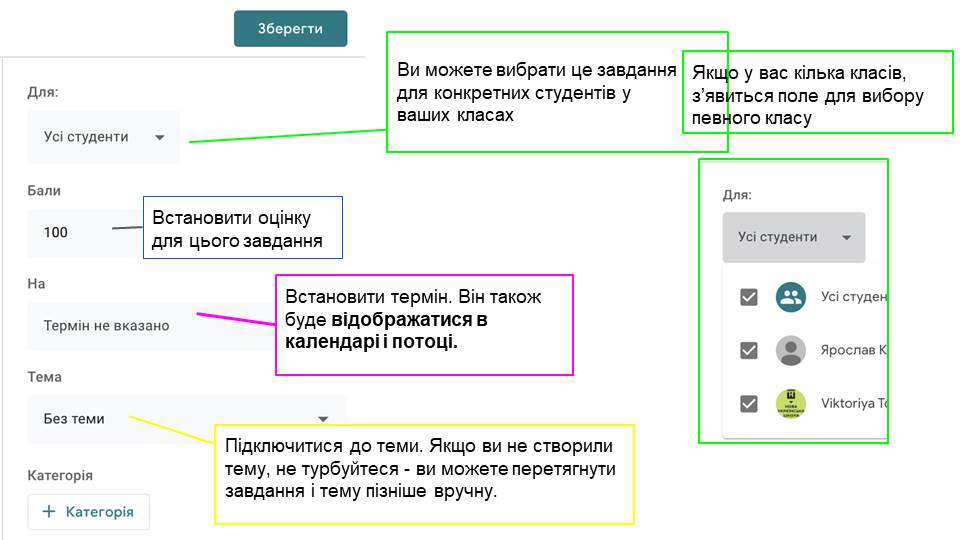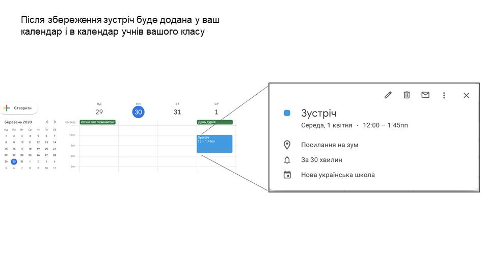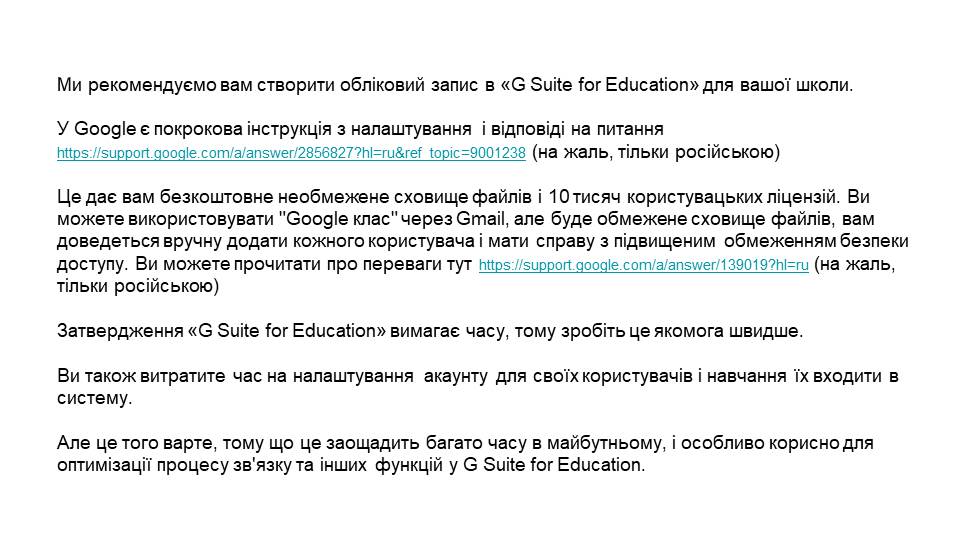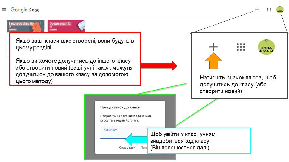 Google-клас. Це платформа, в якій ви можете створити віртуальний клас, через електронну пошту додати до нього своїх реальних учнів, ставити завдання у спільному структурованому просторі всім школярам або вибірково, оперативно обмінюватися інформацією, створювати свої завдання або додавати їх з інших платформ.